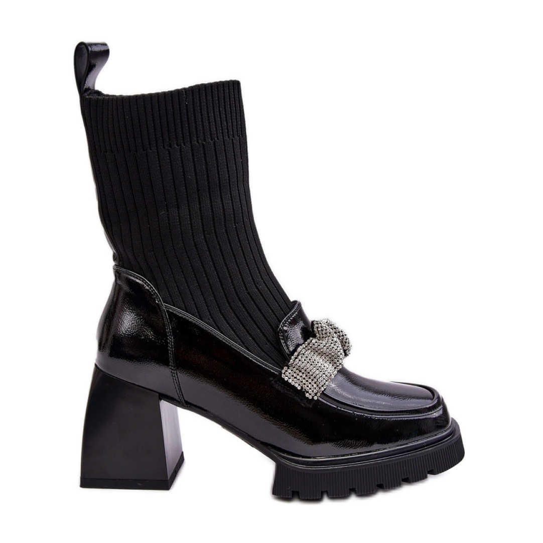 Made of high quality eco leather, they provide a shiny and elegant look that perfectly fits into current trends. The upper in the form of a sock not only adheres perfectly to the leg, but also adds a unique character to the whole cut. An additional advantage is the wrought strap with shiny rhinestones, which catches the eye and gives the shoes originality.