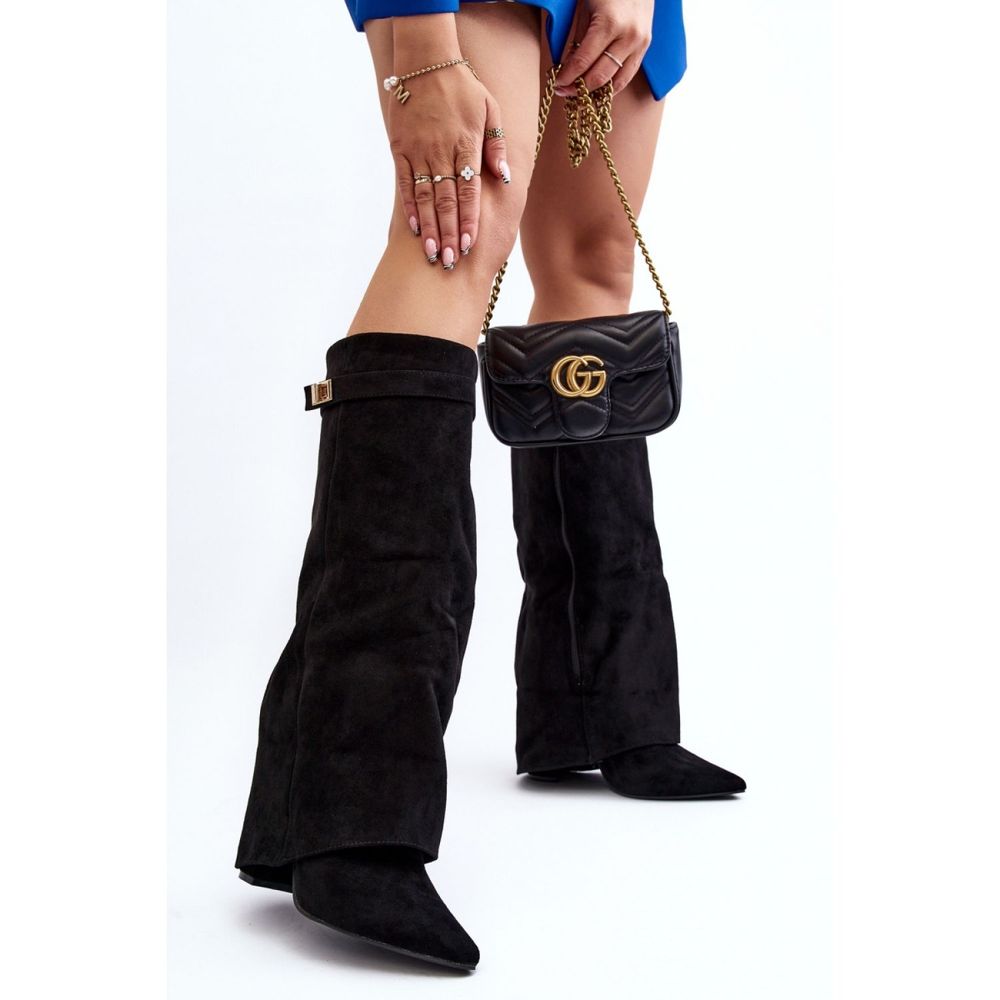 Portor model 9501A Black model by Step in Style is the perfect choice for women who want to combine elegance with comfort. Made of high quality eco suede, these stylish boots are distinguished by a upper, which effectively occurs to heel, giving the whole figure a modern and unique look.