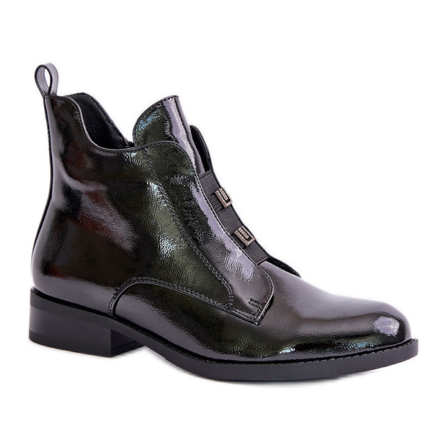 Boots are fastened with a zipper, which makes it easier to put on and take off. Rounded noses give them a classic look, and decorative details and elastics at the front make them gain a unique character. The interior of the shoes is insulated with fabric, which provides heat on cooler days, and the insert made of eco leather guarantees comfort.