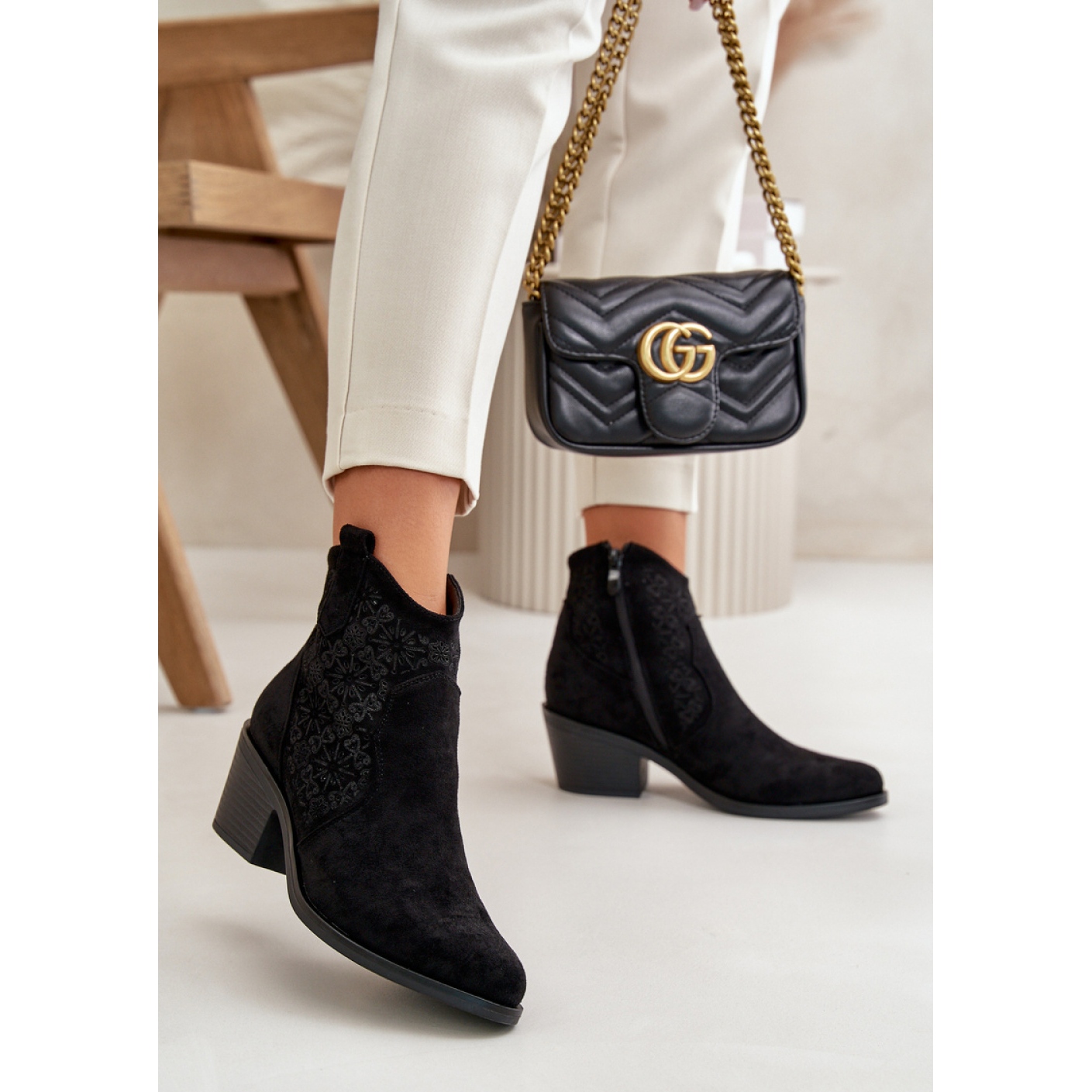 The openwork upper not only adds subtleties to them, but also allows them to flow freely, which is extremely important on warmer days. A stable heel with a height of 6.5 cm provides comfort when walking, without giving up an elegant look. Thanks to the practical zipper fastening, putting on and taking off boots, it becomes child's play.