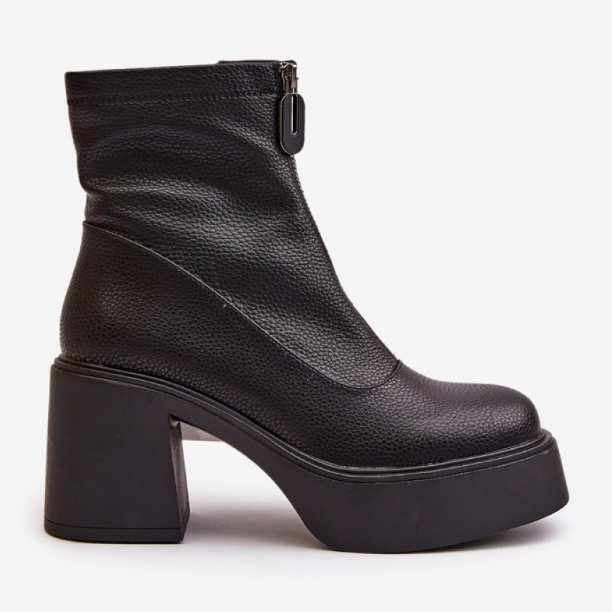 Their solid platform and heel in the form of a post not only add elegance, but also ensure stability and comfort in everyday use. Boots are comfortably fastened with a zipper, placed on the side, which makes it easier to put on. An additional advantage is the decorative lock at the front, which gives the shoes a unique character.