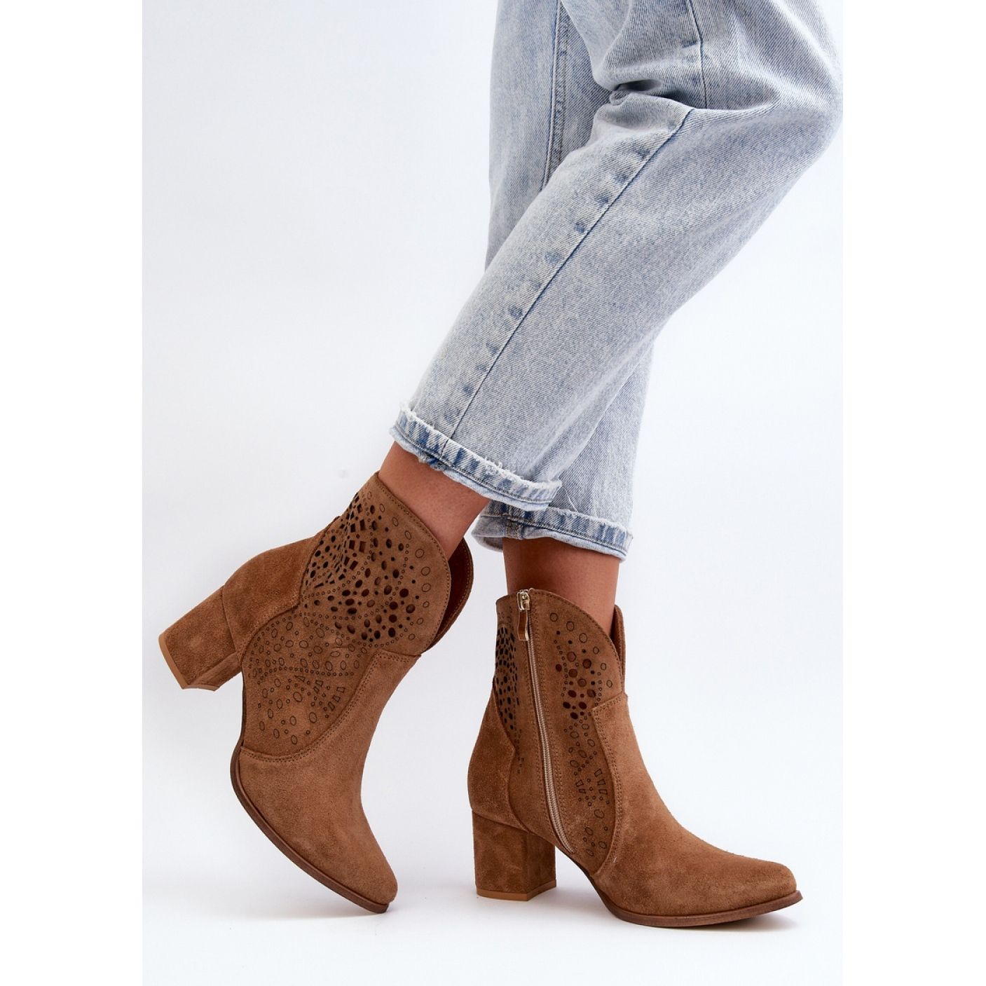 Botki model Zazoo 3166/P Camel from the Step in Style brand is a great choice for every lover of elegance and comfort. Made of high quality natural suede, these brown boots delight with their openwork pattern and a 6 cm high heel, which makes them an ideal complement to many styles, both casual and more formal.