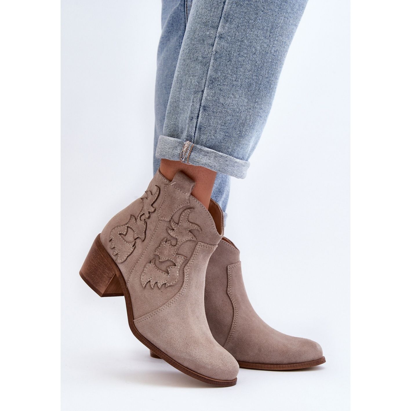 Botki model Zazoo 3426 Cappuccino from Step in Style is the perfect choice for women who want to combine comfort with elegance. Made of high quality natural suede, these beige boots are not only stylish, but also durable. Their 12 cm high upper adheres to the ankle, and additional decorative patches give them a unique character.