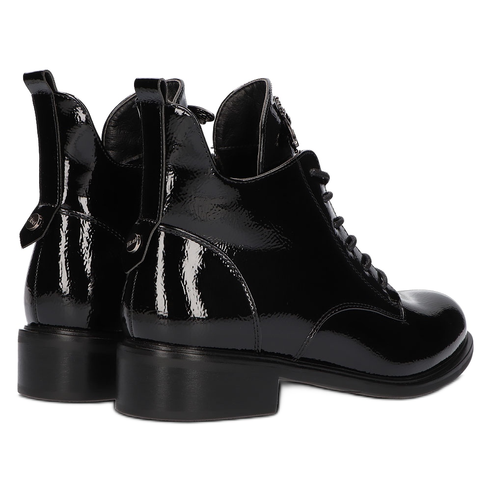 Add a touch of elegance to your wardrobe with the Filippo DBT3060/21 BK patent ankle boots with a bow tie in a classic black color. These fashionable shoes combine precise workmanship with high-quality eco-leather and a stylish design that makes them a perfect match for both formal and everyday outfits.