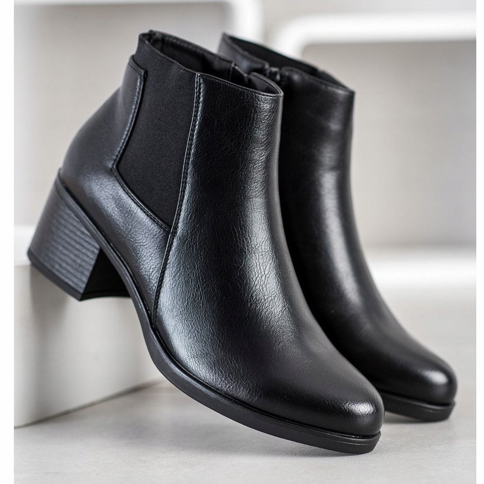 J. Star block heel boots are a great choice for women who value elegance and comfort. Made of high-quality eco-leather, they are not only stylish but also environmentally friendly. Their classic black color makes them suitable for many styles - from casual to more elegant, perfect for celebrations.