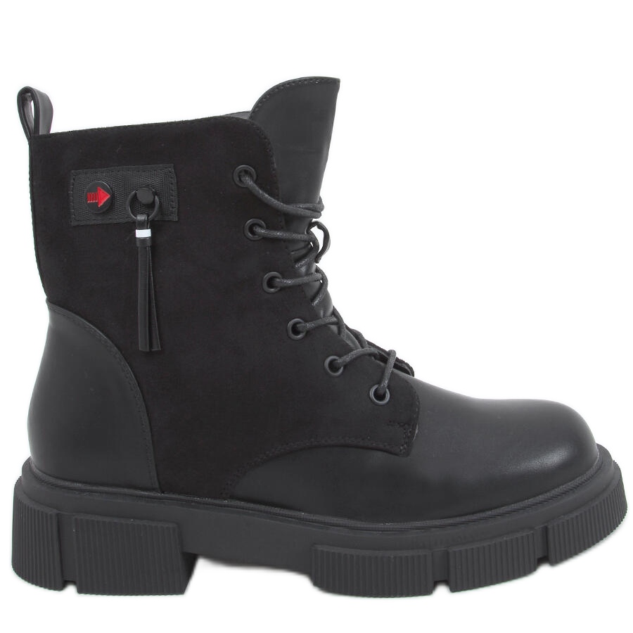 Discover a unique style and comfort thanks to boots on a thick Provo Black sole, ideal for a modern woman. These elegant, laced workers combine fashionable design and practicality. Made of combination of eco suede and ecological leather, they delight with an elegant black color and a subdued, smooth surface that makes them match many styles.