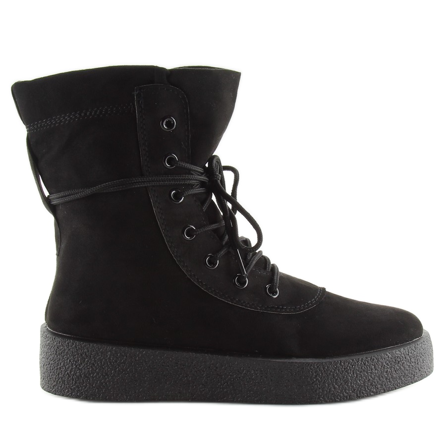 Discover the latest model of ankle boots Na Wysoki Podeszwie 8301 Black – the perfect choice for modern women who value style, comfort and functionality. These original women's ankle boots with a high shaft have been carefully crafted from ecological suede, which not only emphasizes their elegant appearance, but also care for the environment.
