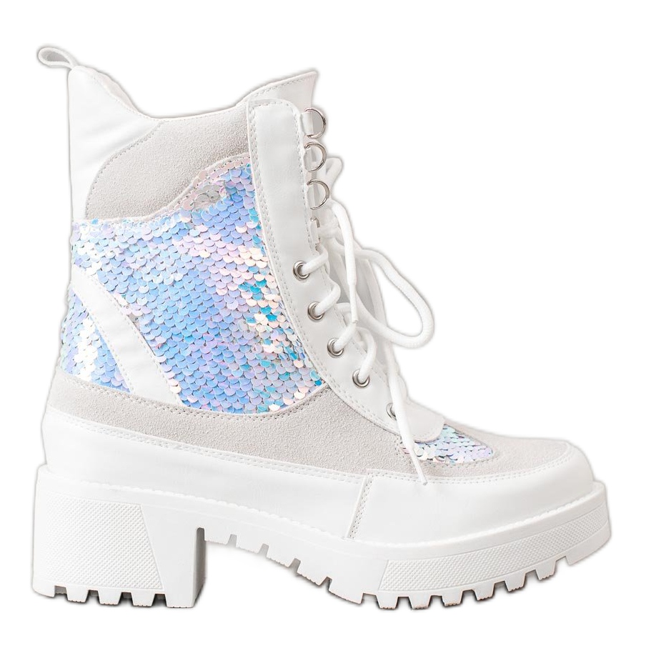 Made of ecological leather, the boots offer comfort and convenience of wearing. Their lace-up fastening allows for a perfect fit to the foot, which makes walking in them a pure pleasure. A unique element of these shoes are the shiny sequins placed on the upper, which give the whole originality and shine.