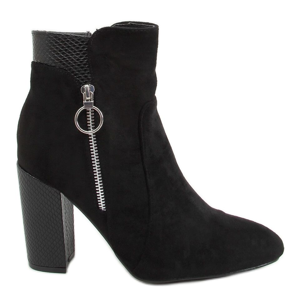 We present the 77-231 Black ankle boots, which impress with their unique design and exceptional comfort. Made of ecological suede and ecological leather, these elegant ankle boots are the perfect combination of style and comfort. Their black color makes them suitable for many styles, from casual to more elegant, and the snakeskin motif adds an original character to them.
