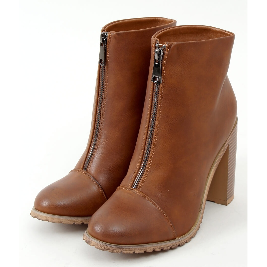 Discover the extraordinary 801 Camel block heel ankle boots that will delight every fashionable woman! These elegant brown ankle boots have been designed with comfort and style in mind. The high, stable 10 cm block heel adds a girlish charm, and the spectacular front zipper is not only an intriguing design element, but also makes them easier to put on.