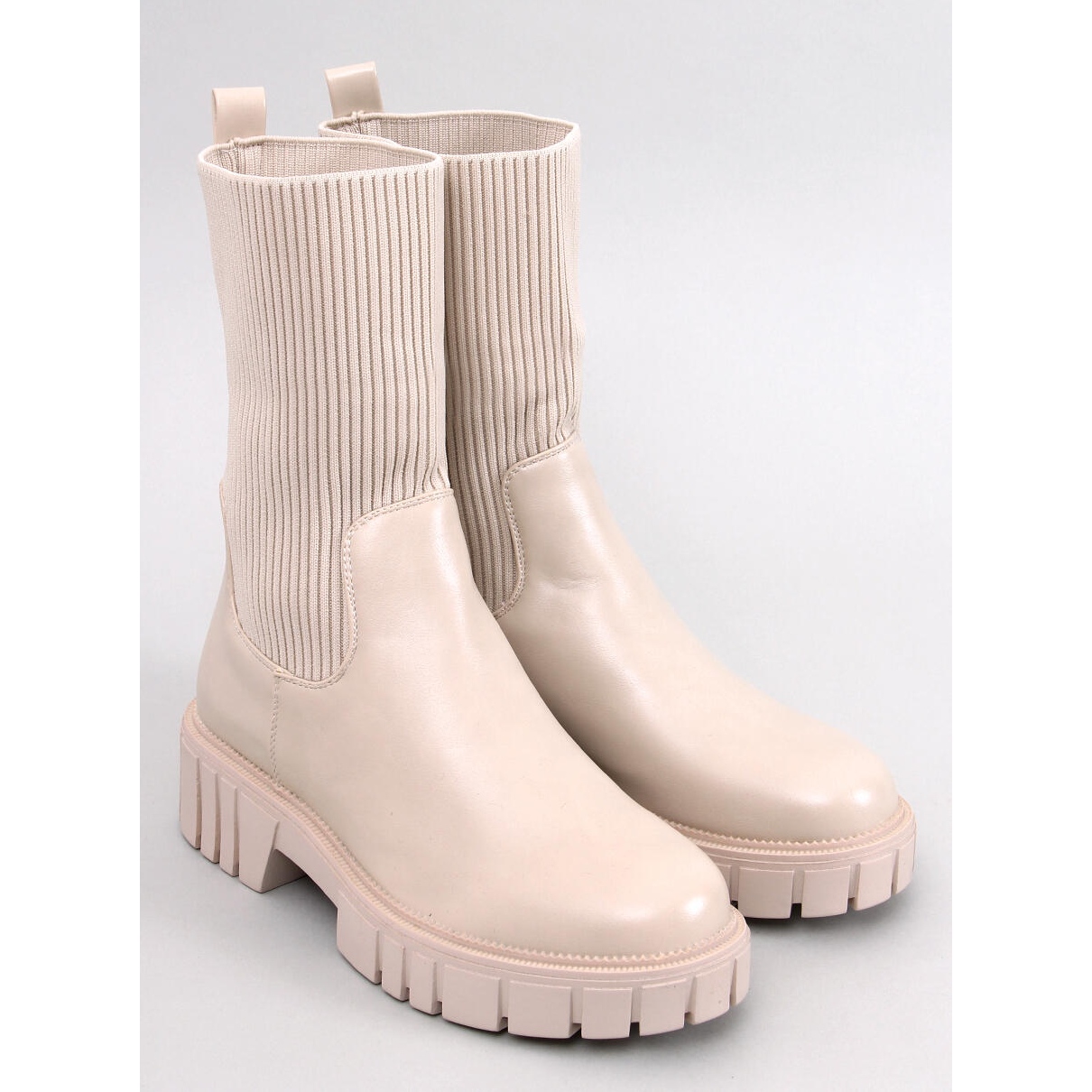 Farrell Beige boots - stylish, comfortable and ready for every day. The beige, smooth model with a flexible "sock" upper perfectly envelops the foot, emphasizing the figure and ensuring comfort of wearing. Thanks to the universal color, they blend well with both jeans and and from autumn dresses.