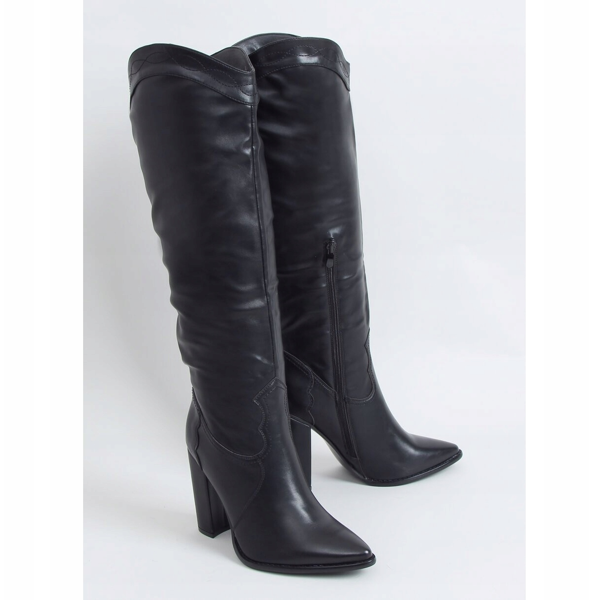 Boots with a cowboy accent black RB81P Black are an ideal proposition for women who want to combine fashion with comfort. Made of high-quality ecological leather, these classic boots with a 10.5 cm high heel impress with a graceful cut that fits into the latest trends.