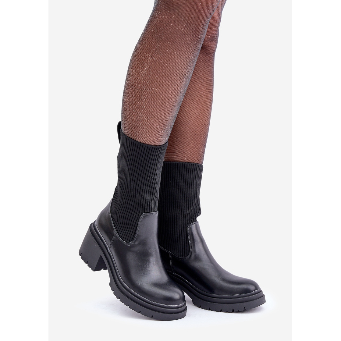 Thanks to their universal design, boots with a sock on a massive heel black will become an indispensable element of every fashionable wardrobe for the autumn/winter season. When buying, it is worth checking the size table to perfectly match the model to your foot. The manufacturer's original packaging offered in the original packaging will certainly be a great gift for every fashion lover.