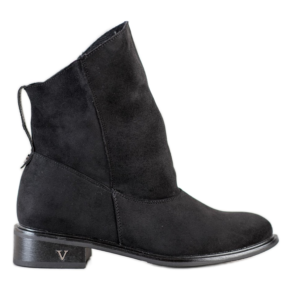 Gogo black ankle boots are a great choice for the upcoming autumn and winter days. Made of high-quality ecological leather imitating suede, they combine modern design with comfort of wearing. The upper with a height of 12-13 cm and a width of 32 cm easily adapts to any leg, and the ankle-high design adds an elegant character.