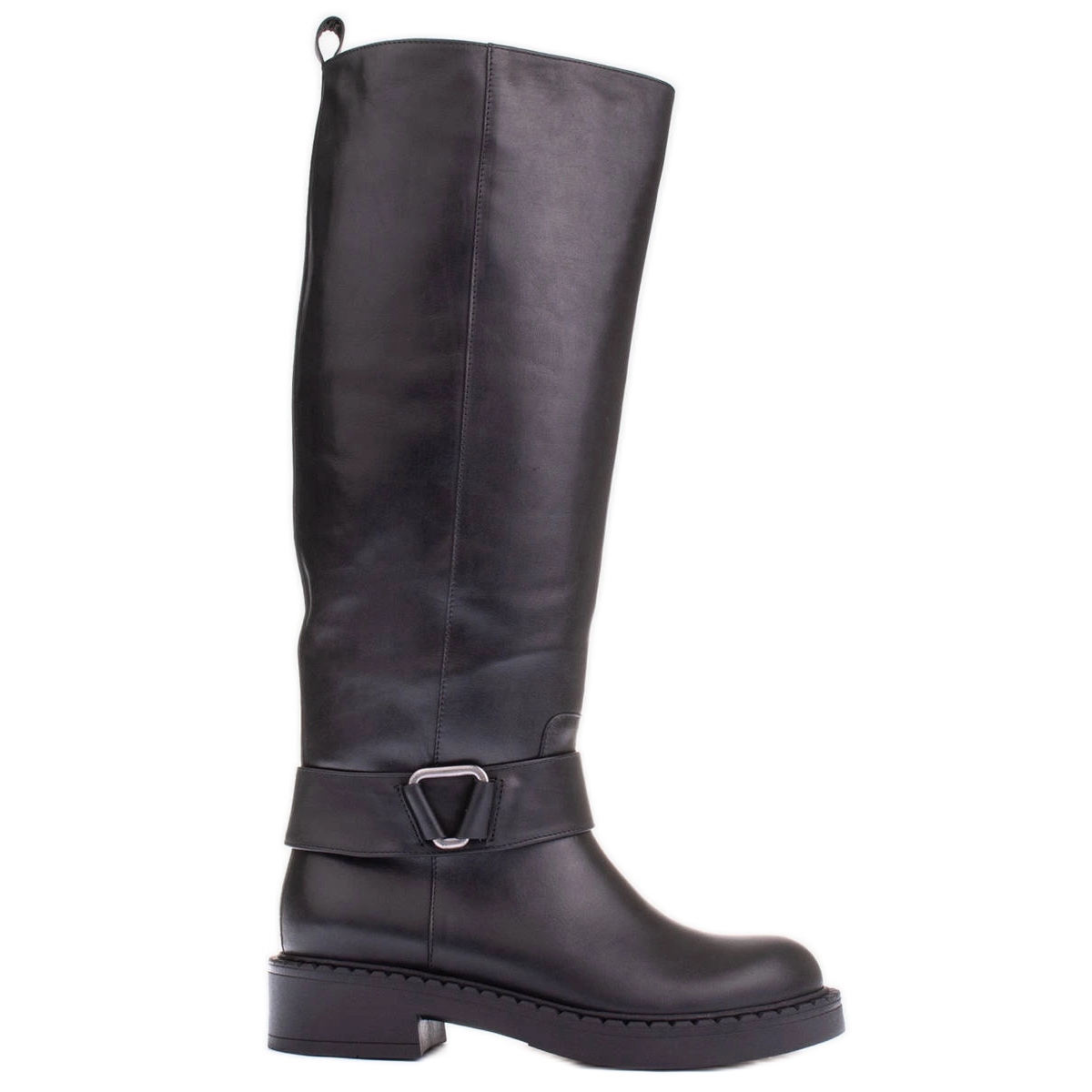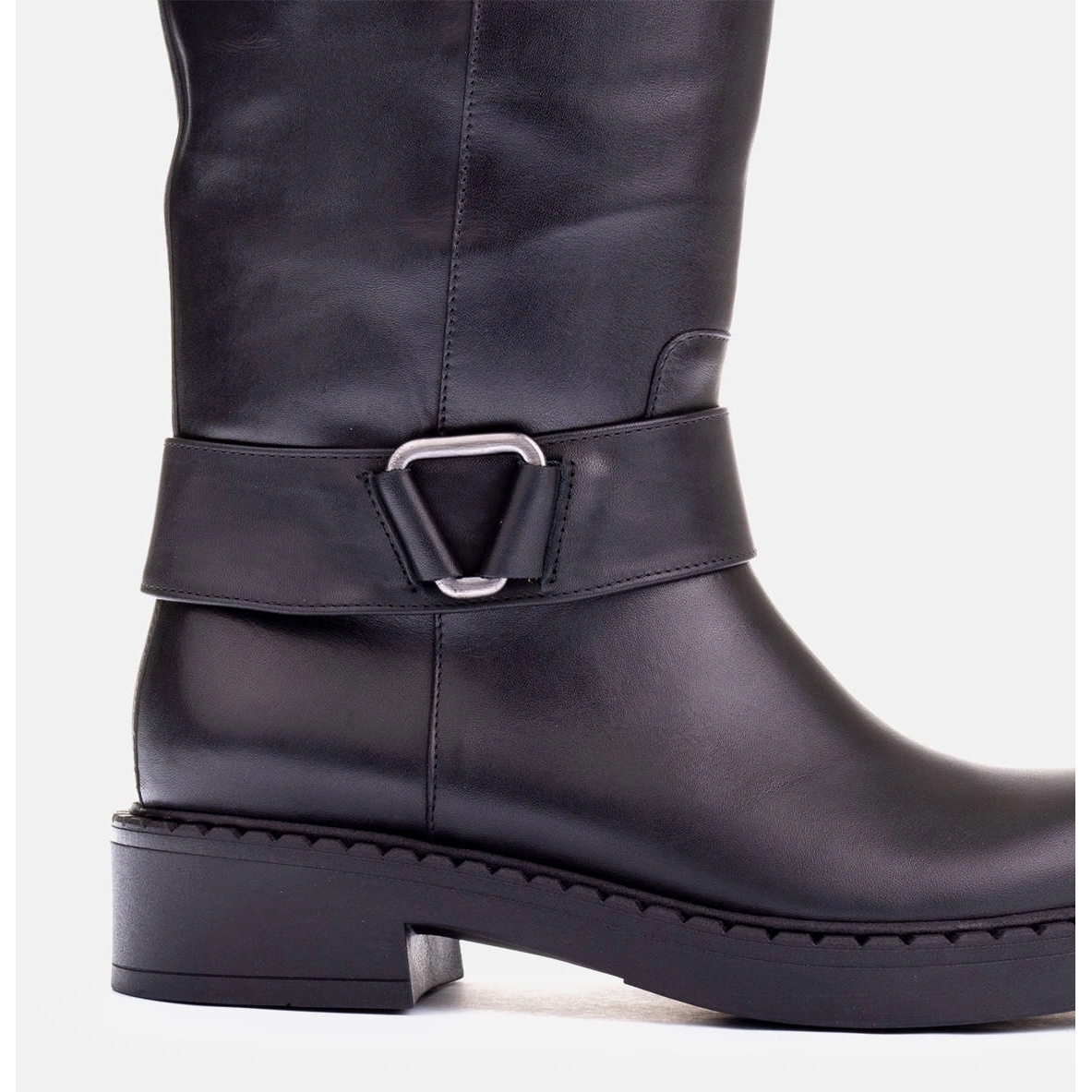 Elegant, universal Marco Shoes boots made of natural grain leather. The classic cut with a slightly rounded nose and a low, stable heel will work both on a daily basis and for more elegant stylizations. The wider upper ensures the comfort of wearing at a larger calf circuit, and the felt warming will keep the heat on cooler days.