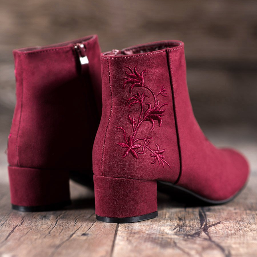 Made of ecological suede leather, the ankle boots are not only environmentally friendly, but also exceptionally soft and pleasant to wear. The wide 4 cm heel provides stability and comfort, ideal for everyday use. The zipper fastening allows for easy putting on and taking off, and the intricately made application with a floral motif adds a unique character to them.