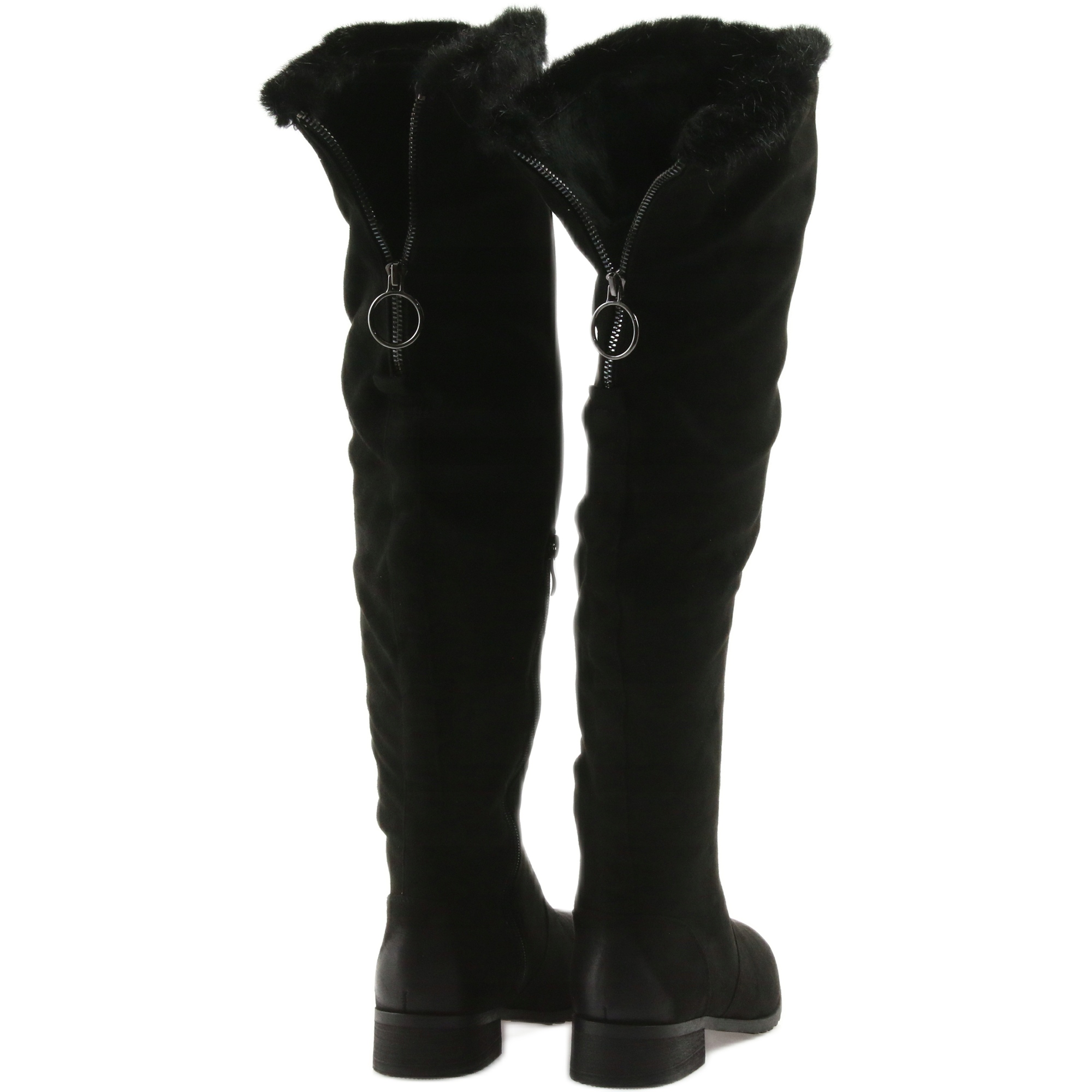 The boots are set on a flat 3 cm heel, which adds a few centimeters to your height and perfectly shapes your legs. Thanks to their classic cut and subdued black color, these boots go great with both casual and more elegant styles.
