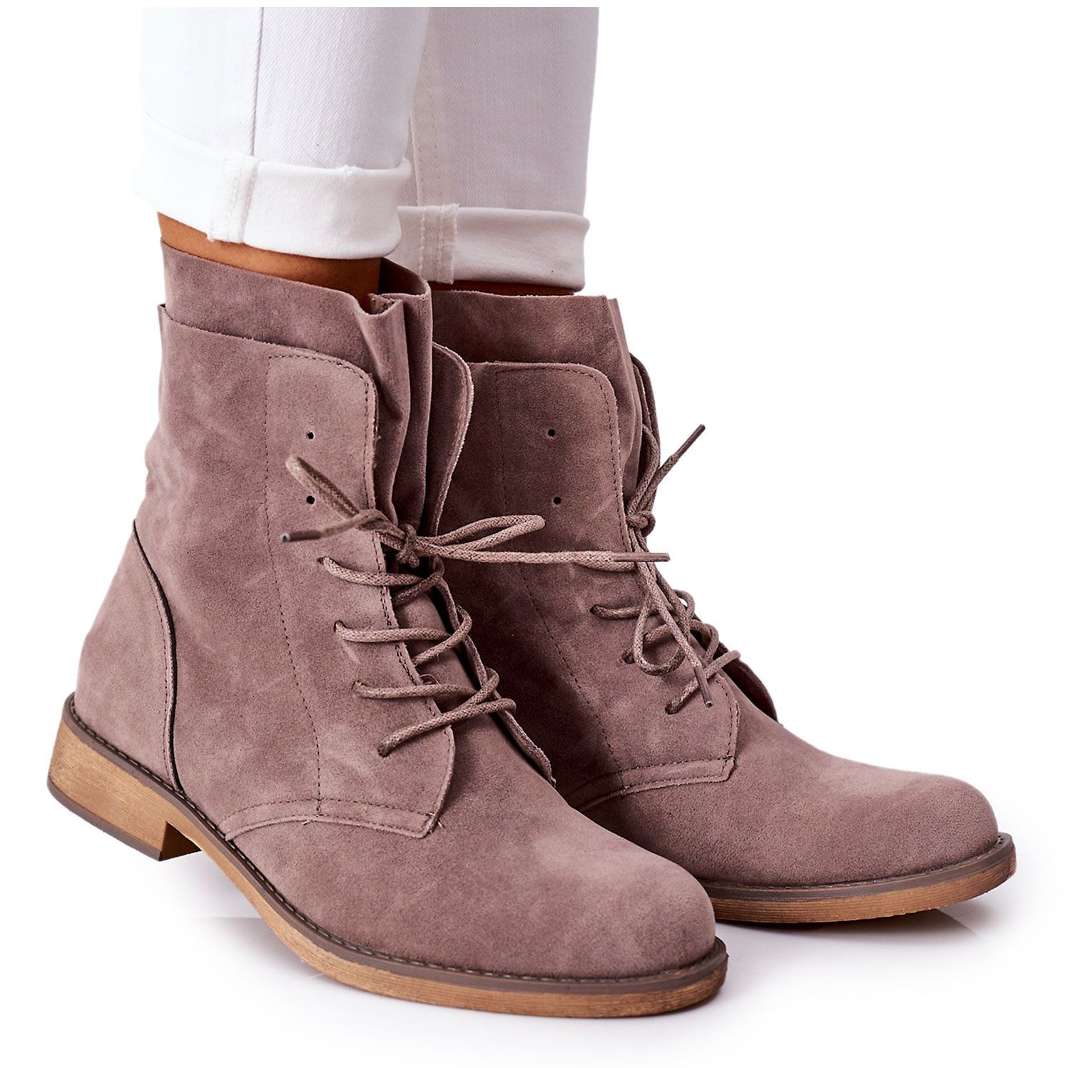 The boots have a flat heel of 3 cm, which makes them comfortable to wear every day, and the height of the upper of 17.5 cm perfectly emphasizes the line of the ankle and adds lightness to any styling. The lace-up fastening allows for a perfect fit to the foot, which increases the comfort of wearing.