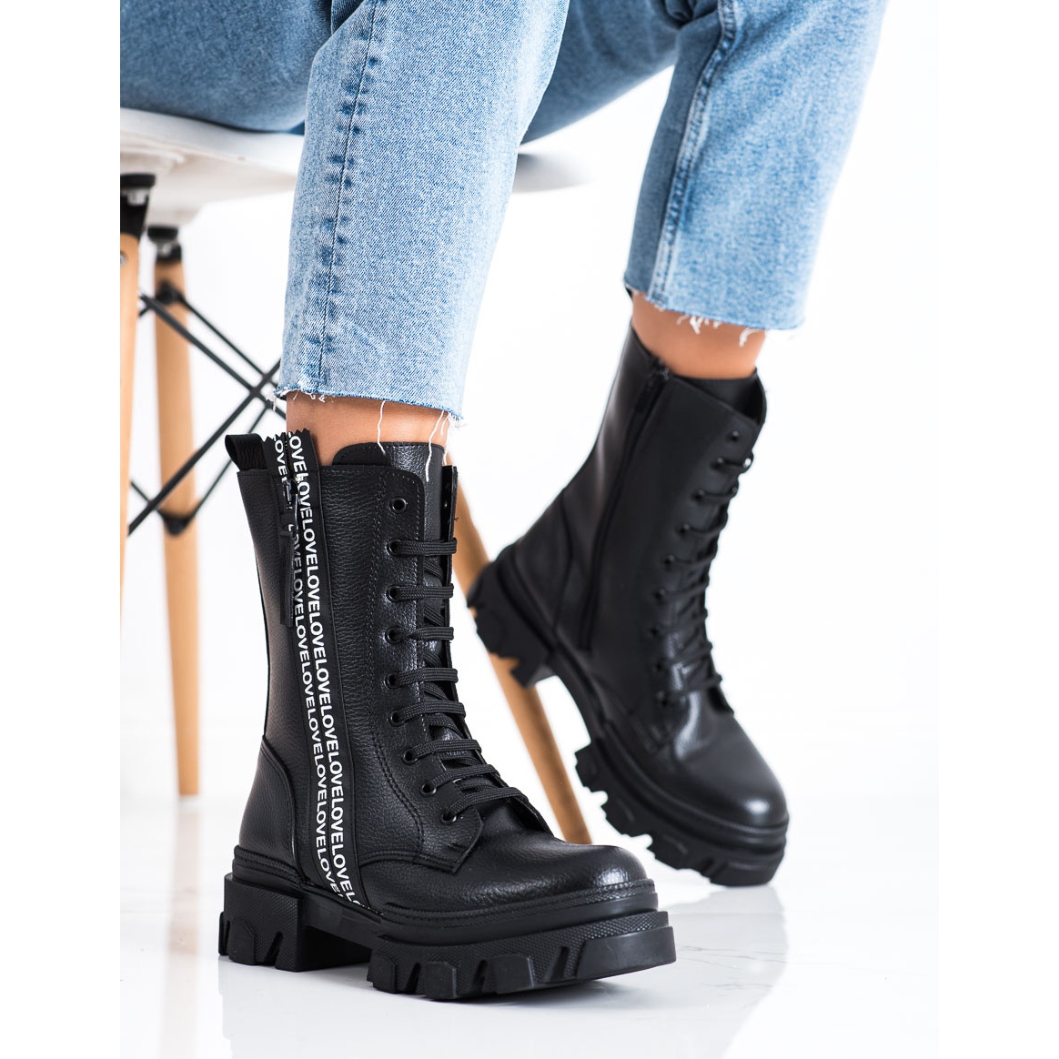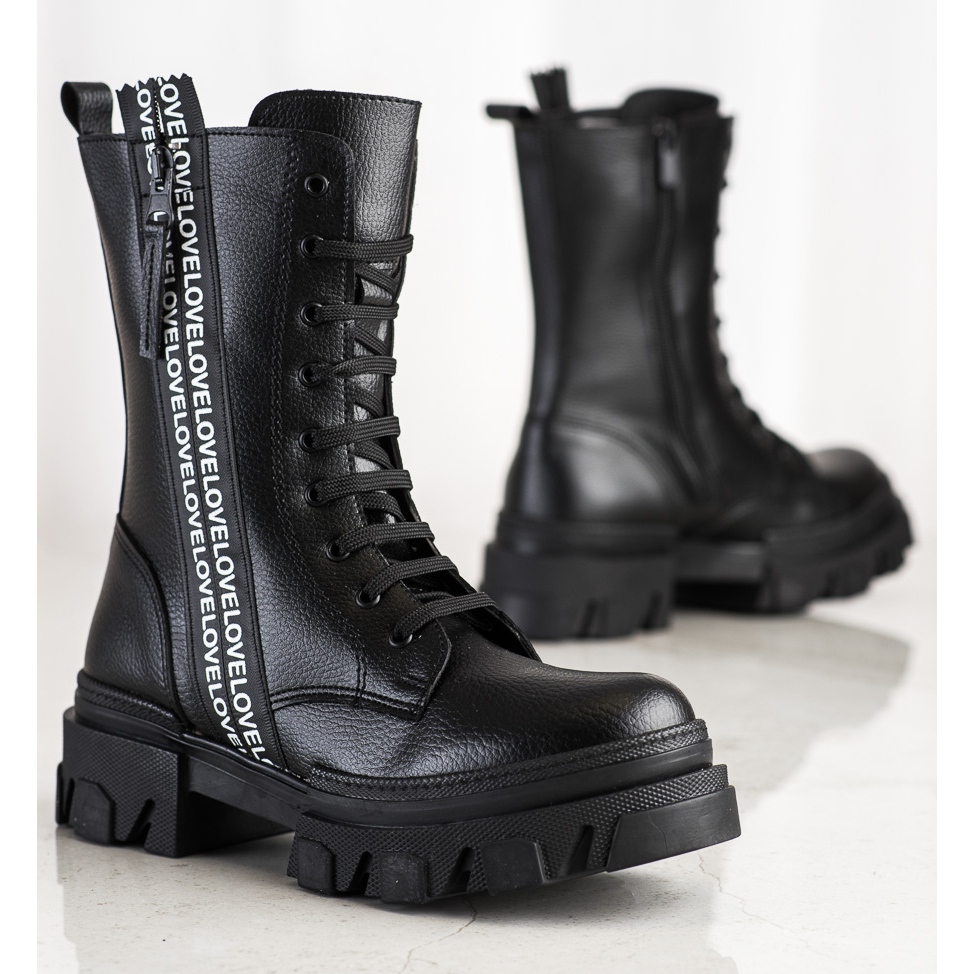 Discover fashion and comfort in one with the SHELOVET Love eco-leather combat boots in classic black. These women's shoes are the perfect choice for everyday wear, perfectly matching casual, rock and fashion styles.