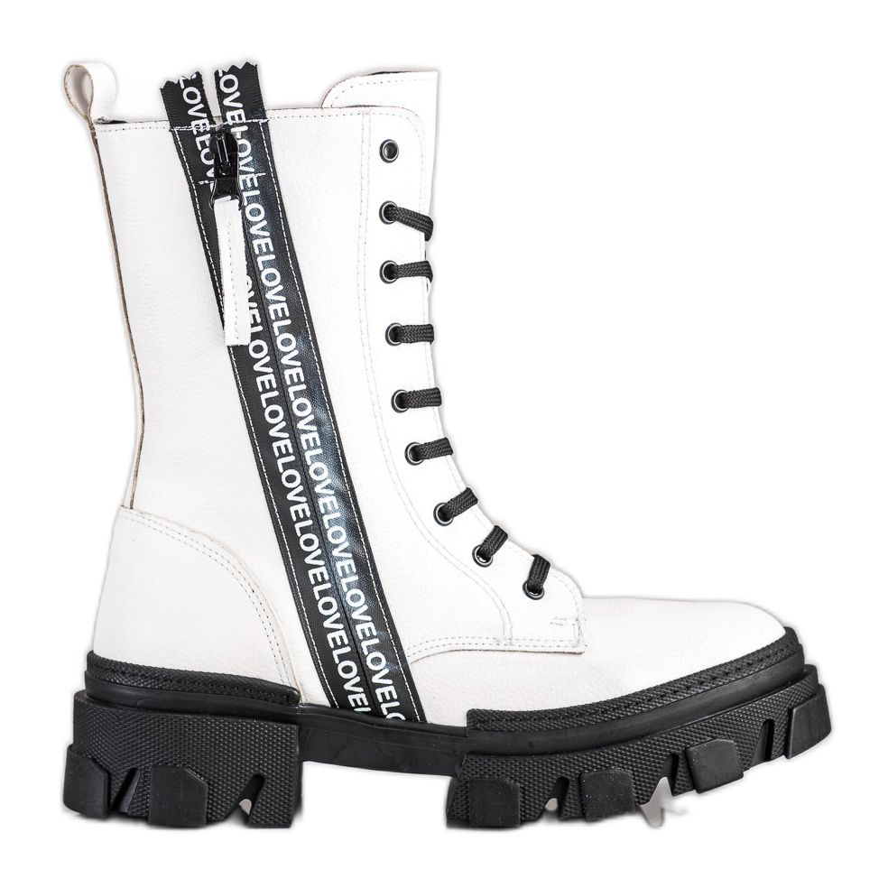 SHELOVET Combat Boots Made of Eco Leather Love in white are a must-have for every fashionable woman who wants to stand out from the crowd. Invest in your style and comfort by choosing these extraordinary shoes that will definitely attract attention!