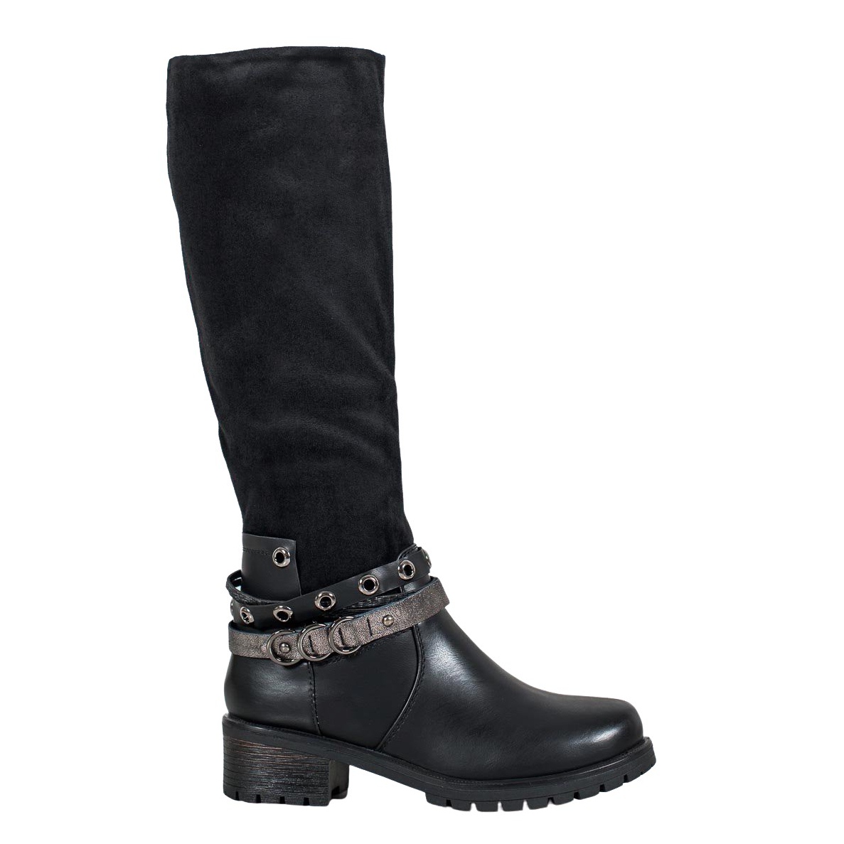 SHELOVET Boots with Rhinestones in Black are the perfect choice for women who want to combine style with comfort. These classic shoes are distinguished by a high upper that reaches to mid-calf, and original decorative straps around the ankle, decorated with rhinestones, which gives them a fashionable character.