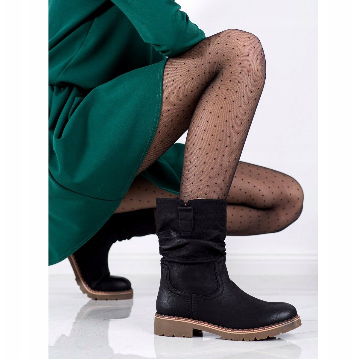 Discover elegance and comfort of use with Super Mode ankle boots with a ruffled upper in a deep black color, which are perfect for colder days. These women's ankle boots, made of high-quality ecological leather, combine modern design and practicality.