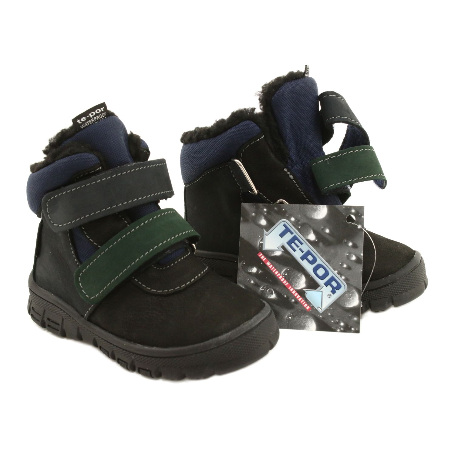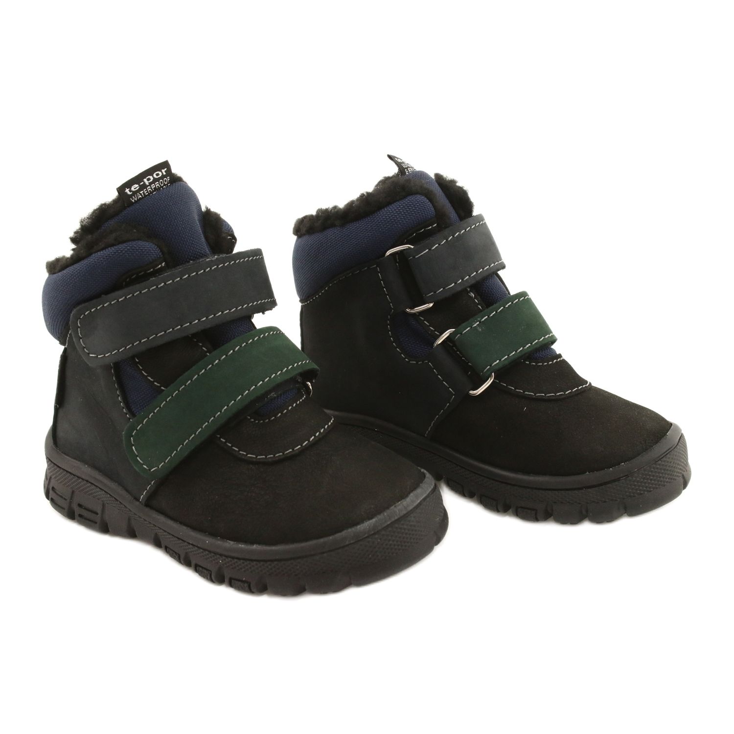 Practical and solid boots for a boy, combining natural skin with durable material. Equipped with the Te-Por (Waterproof) membrane, thanks to which the shoes are waterproof-perfect for winter outputs and games outside. The interior insulated with soft fur provides heat, and the stiffened heel stabilizes and protects the child's ankle.
