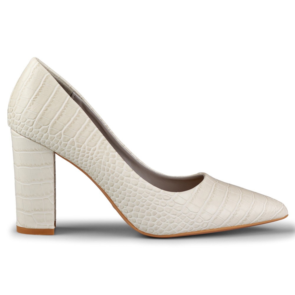Discover elegance and comfort with light pumps with a block heel from Inna brand. These stylish shoes, made of high-quality eco-leather in a shade of gray, are perfect for spring and summer, adding chic to any styling. The imitation crocodile leather gives them a unique character, and the pointed toe makes them extremely feminine and phenomenal.