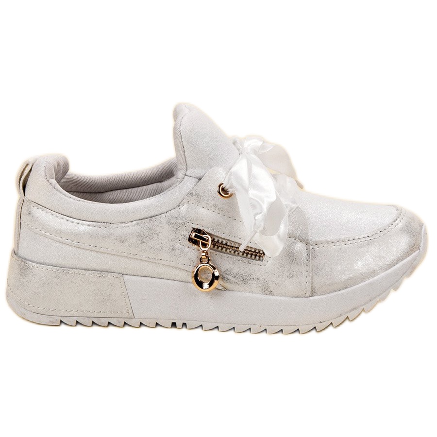 The uppers of these shoes are decorated with shimmering glitter and shiny metallic inserts, which attract attention and give the sneakers an original character. Additional decorative zippers add modernity, and the tied ribbons not only look great on the feet, but also provide the possibility of a perfect fit for each leg.