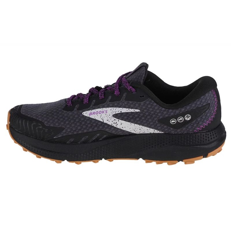 We present Brooks Divide 4 GTX running shoes, which are an ideal choice for off -road enthusiasts. These elegant, black shoes in a minimalist style were designed for a female foot, offering excellent comfort and support at every step.