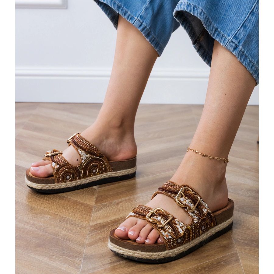 Inna marka Brown ethnic flip flops with clamps on stripes
