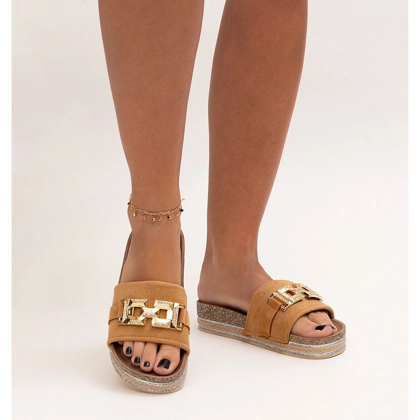 Discover the latest hit of the season - brown flip flops with a shiny Niamh buckle that will become your favorite summer addition! Made of ecological suede leather, they combine elegance with everyday comfort. Their slip -in design allows quick installation, which makes them an ideal choice for beach trip or spontaneous outputs to the city.
