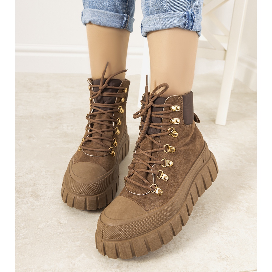 Brown insulated Calabresi lace-up women's boots are a great choice for colder days. With their classic design, these elegant shoes combine functionality and style. Made of high-quality eco-suede, they provide comfort in use and are environmentally friendly.