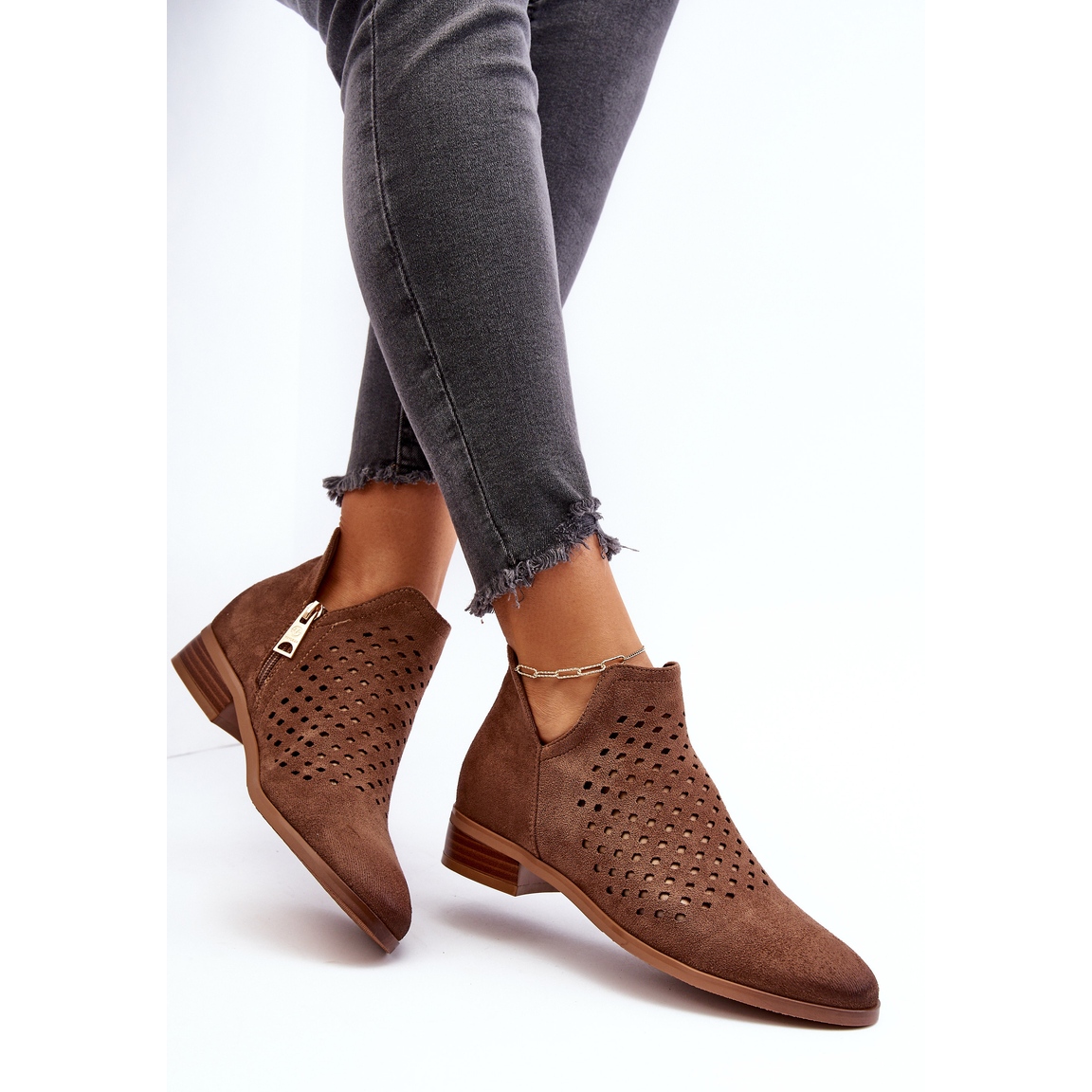 Discover the unique Janetris low women's ankle boots from Vinceza, which will be a perfect complement to your wardrobe for every occasion. These ankle boots, made of high-quality eco-suede, captivate with their openwork design, which introduces a subtle, elegant accent to the styling. Their brown color makes them easy to combine with a variety of outfits - from everyday to more formal.