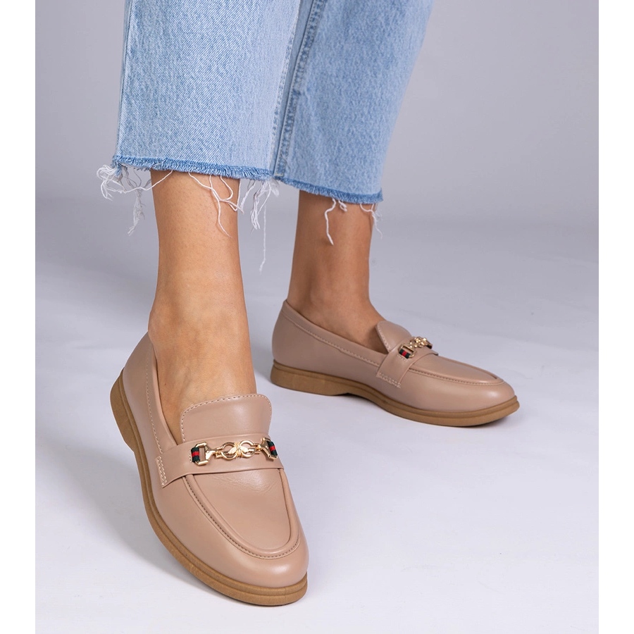 Discover your new passion for elegance and comfort with brown moccasins with a golden decoration! These classic khaki shoes are the perfect choice for every woman who wants to combine style with comfort in everyday stylizations.