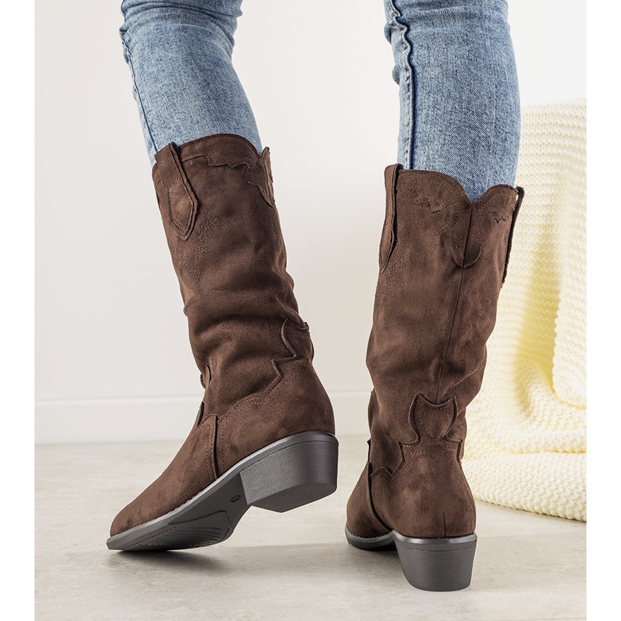 **LuckyShoes Brown Cowboy Boots** are a must-have for every fashionista. These unique shoes combine comfort and style, making them the perfect choice for everyday wear. Made of high-quality eco-suede, they look incredibly elegant, and their smooth design makes them easy to match with different styles.