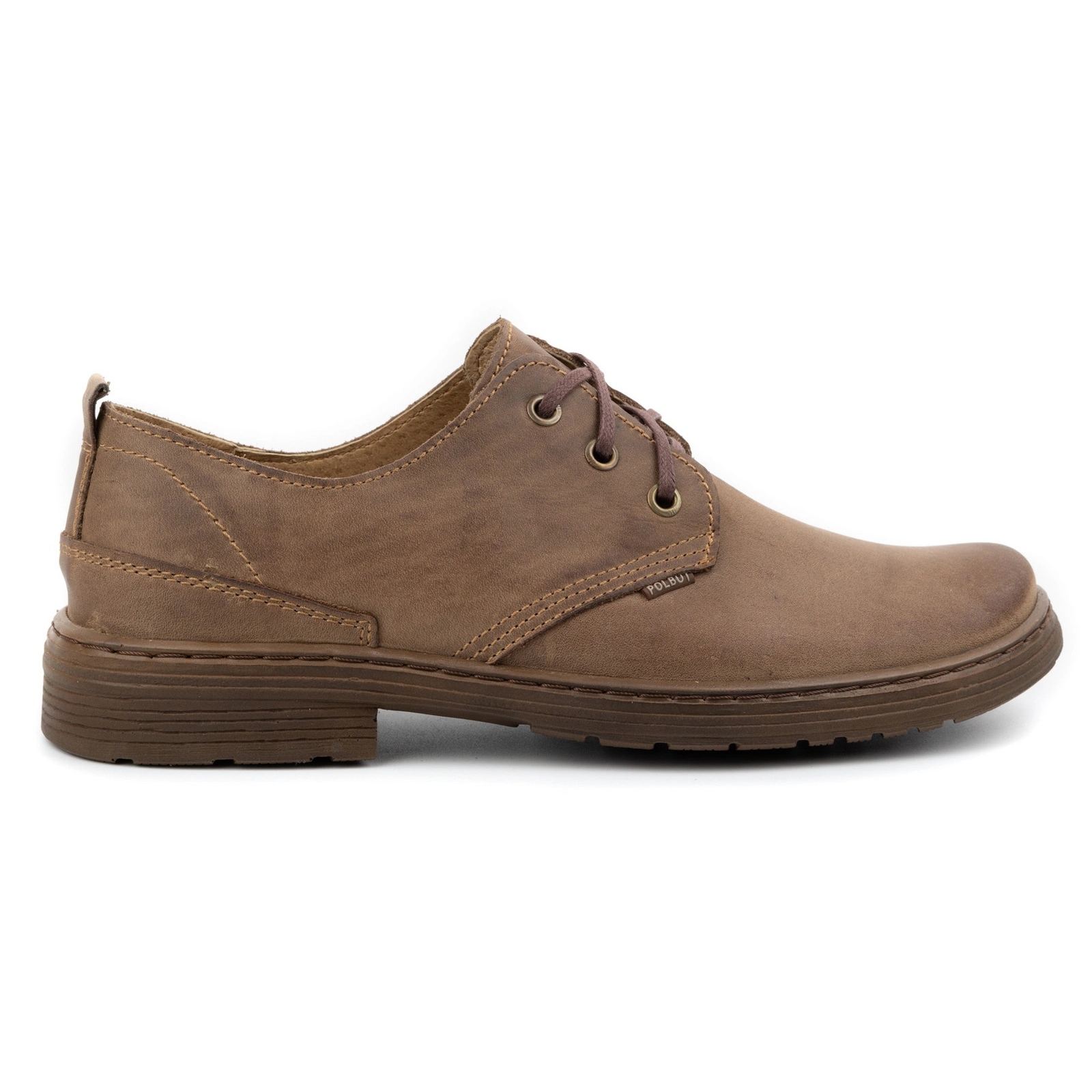 Classic, comfortable men's shoes from Polbut, combining an elegant look with everyday comfort. Made of natural leather in a timeless brown color, with a high -quality, synthetic sole and a soft, leather insert - perfect every day, especially in cooler months.