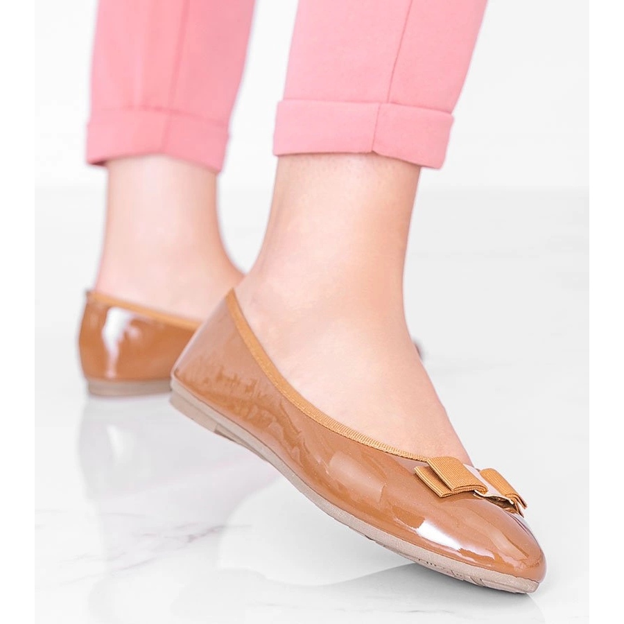 Brown ballerinas varnished with a yoko bow - elegance in the daily edition