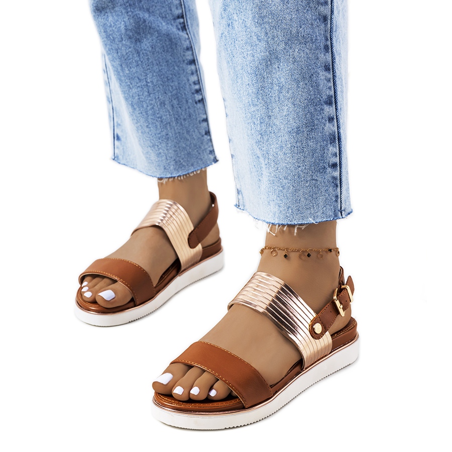Inna marka Brown sandals with a metallic Larochelle insert golden