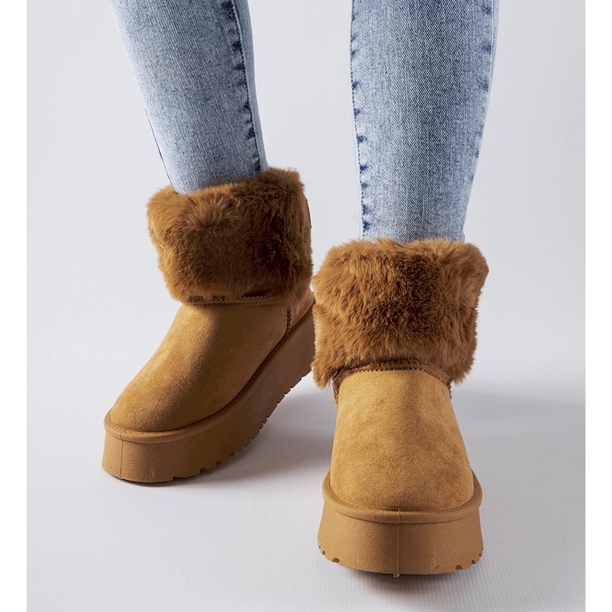 Brown snow boots decorated with fur adelphia - style and warm for the winter