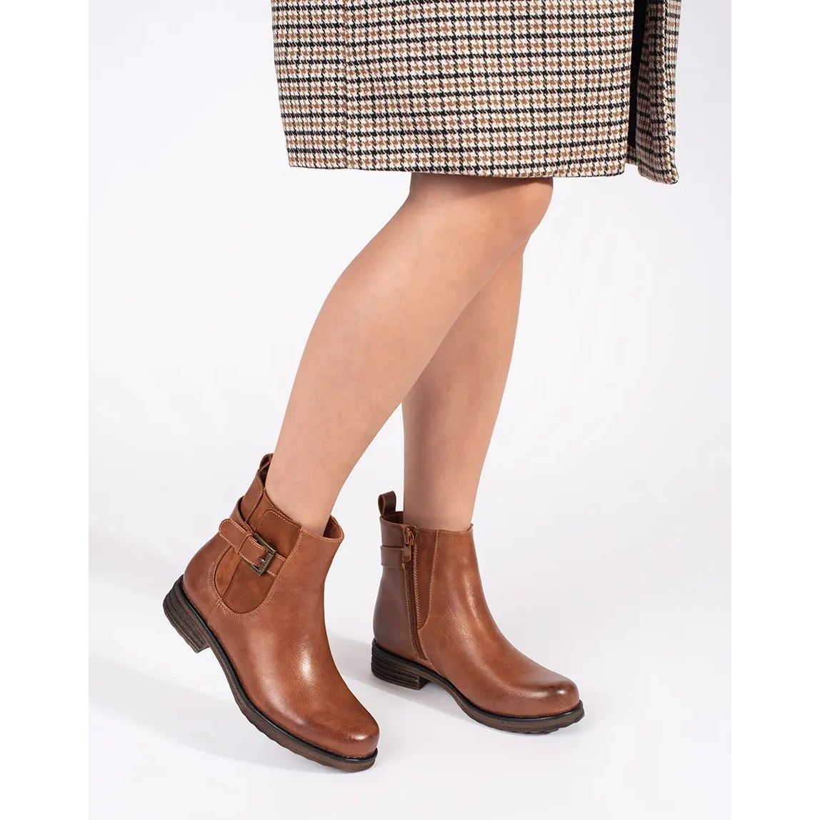 Inna marka Brown women's ankle boots with a buckle on a low heel