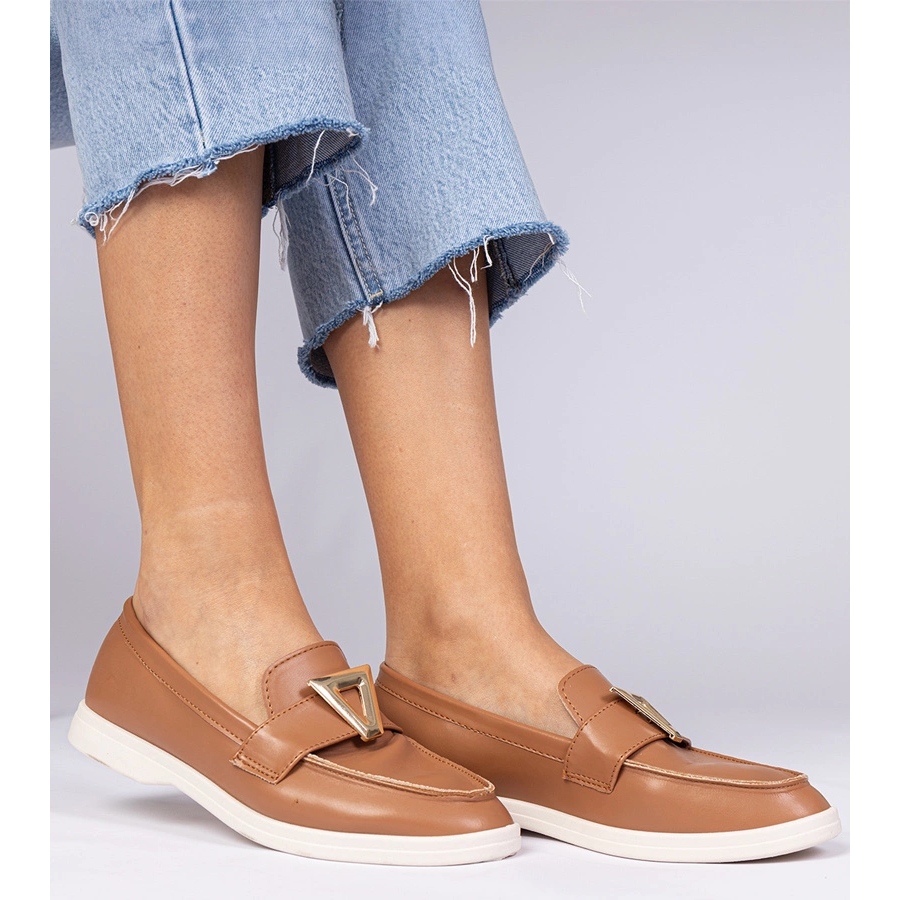 Brown women's loafers with an elegant decoration is the perfect choice for every woman looking for harmony between style and comfort. Made of high quality ecological leather, they combine durability and ease of care. Their beautiful Camel color perfectly fits into the latest trends, and at the same time is a universal complement to many styles.