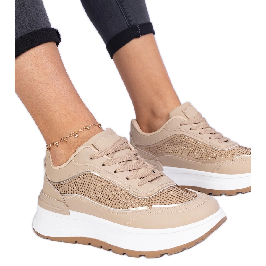 Inna marka Brown women's sneakers with zircons