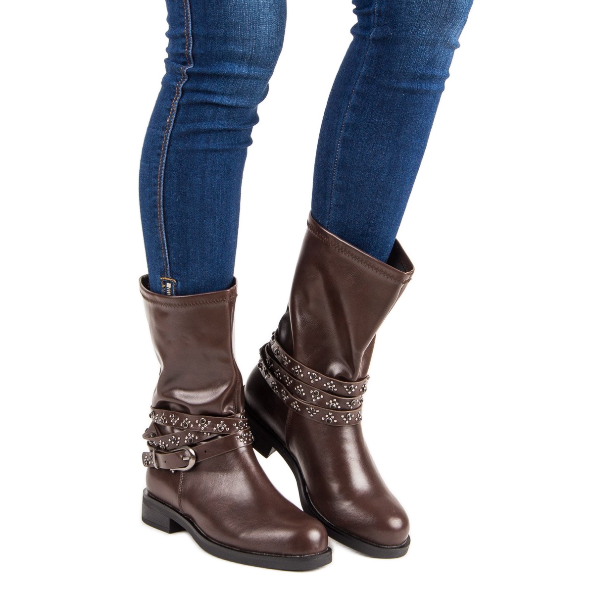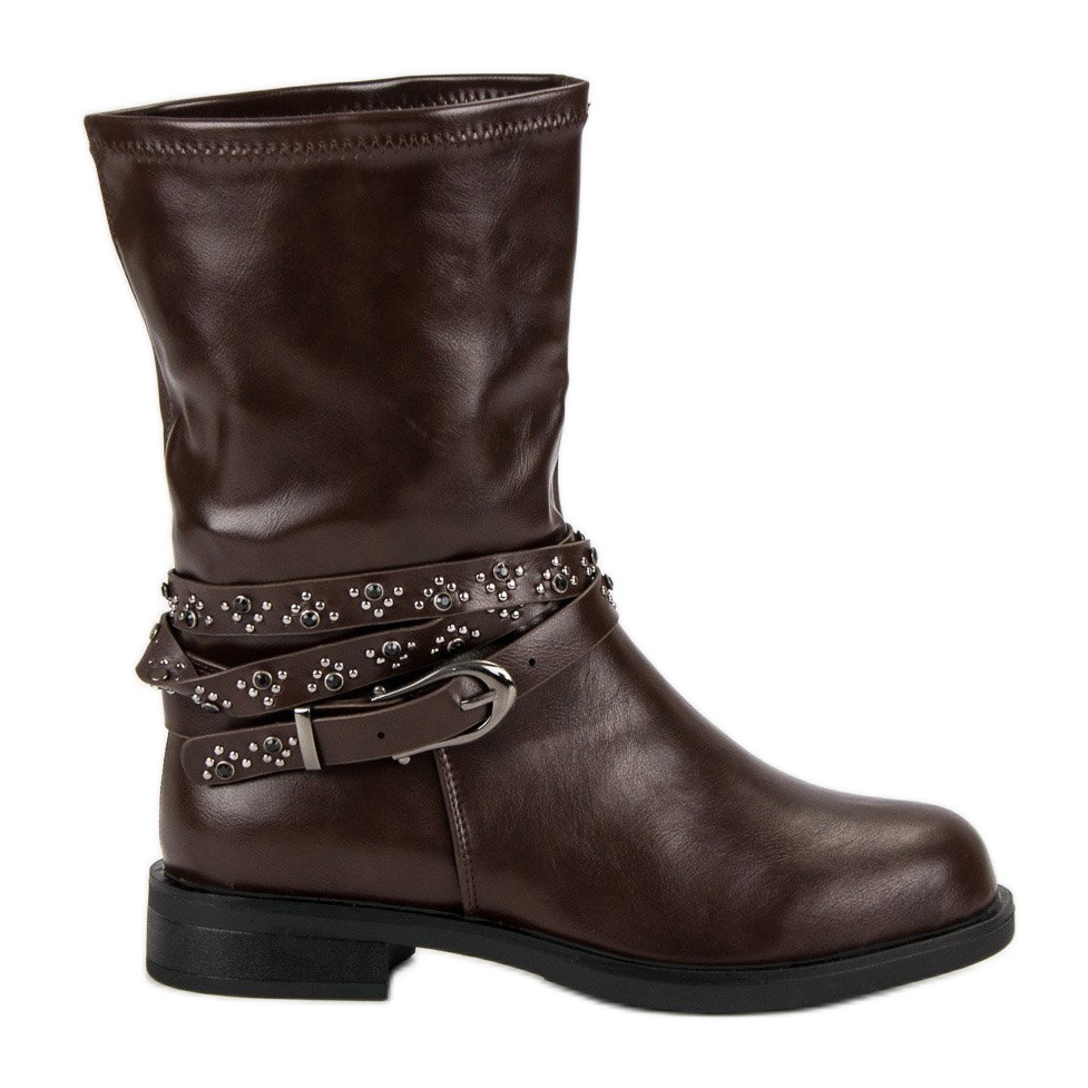 Small Swan Brown Workers also stand out with details such as rhinestones and a decorative buckle, which add character and make them fit perfectly into the trends of rock and casual style. Thanks to the shaft height of 23 cm and width of 38 cm, these boots fit perfectly to the ankle, while not warming the feet, which makes them suitable for colder days.