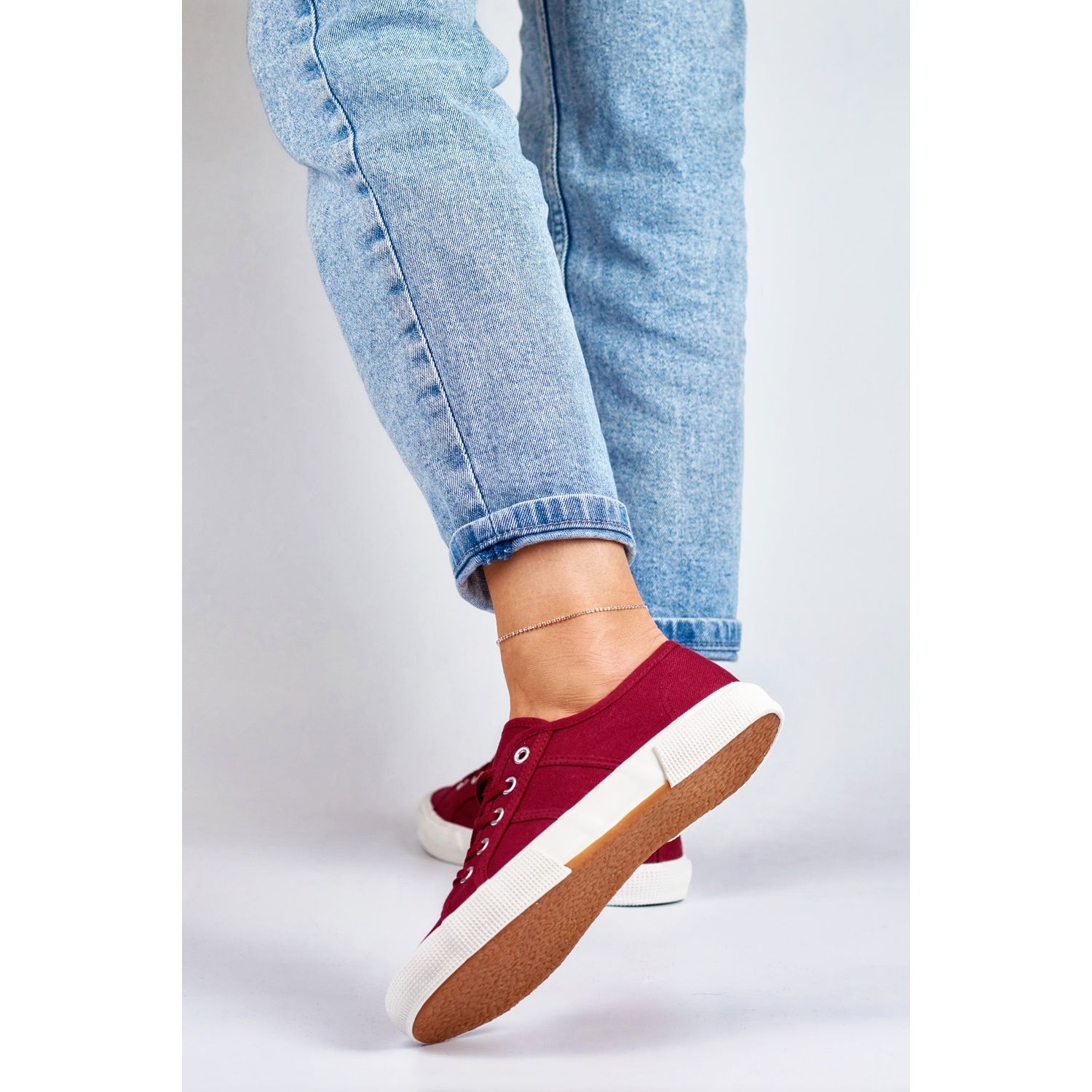 Their minimalist, patternless design makes them easy to match with a variety of outfits – they look great with both jeans and a summer dress. Burgundy low-top sneakers are a must-have in every wardrobe!