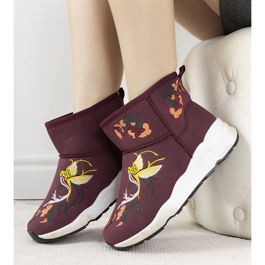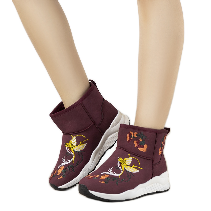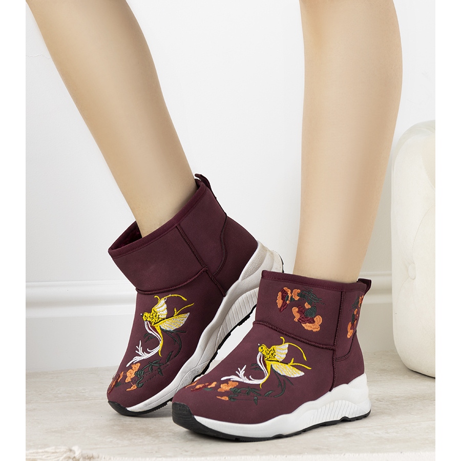 Inna marka Burgundy snow boots with Jamil embroidery red
