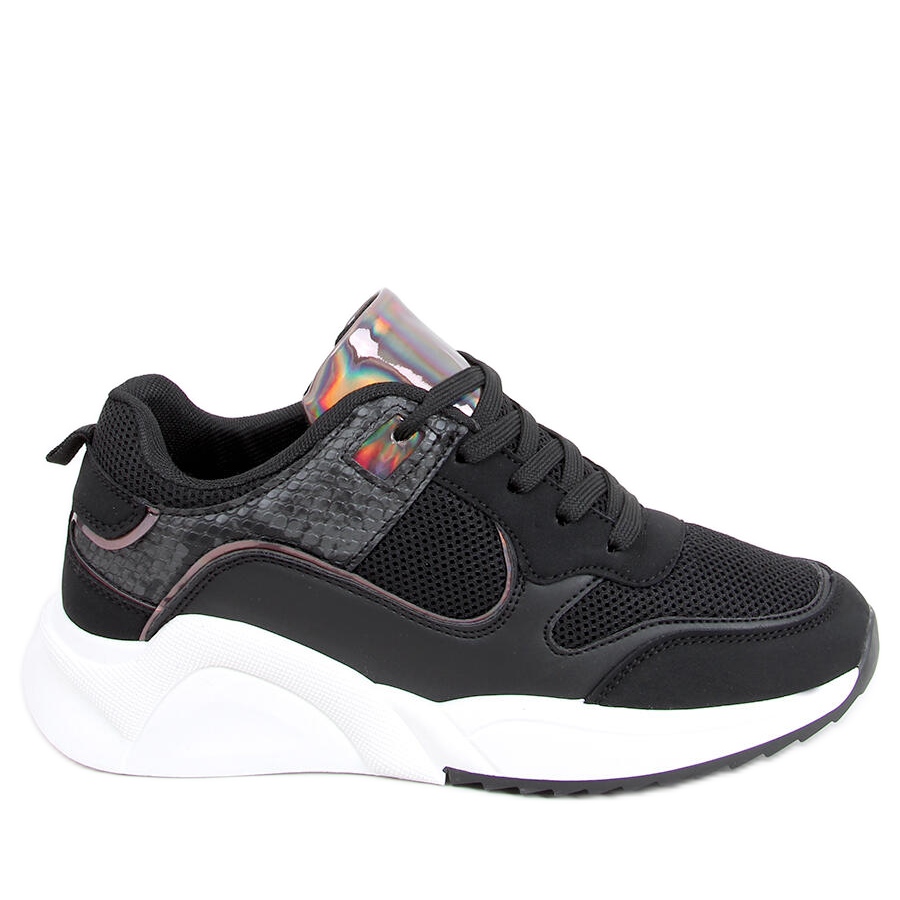 We present the Cairo Black women's sports shoes in elegant black, which will be a great choice both for everyday use and during training. This model is distinguished by fashionable holographic accents and inserts imitating snakeskin, which add a modern character and make them not only a functional but also a stylish element of your wardrobe.