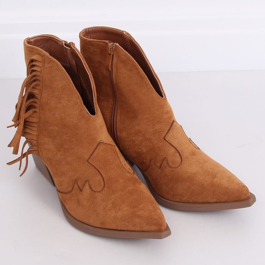 Discover the latest trend in footwear fashion with women's cowboy boots camel NC999 in brown! These stylish ankle boots with a wide heel of 6.5 cm are a great choice for spring days. The cowboy style with graceful toes and an effective cutout at the front makes them stand out from other models. Additionally, the fringes add a unique character, giving the whole a unique style.