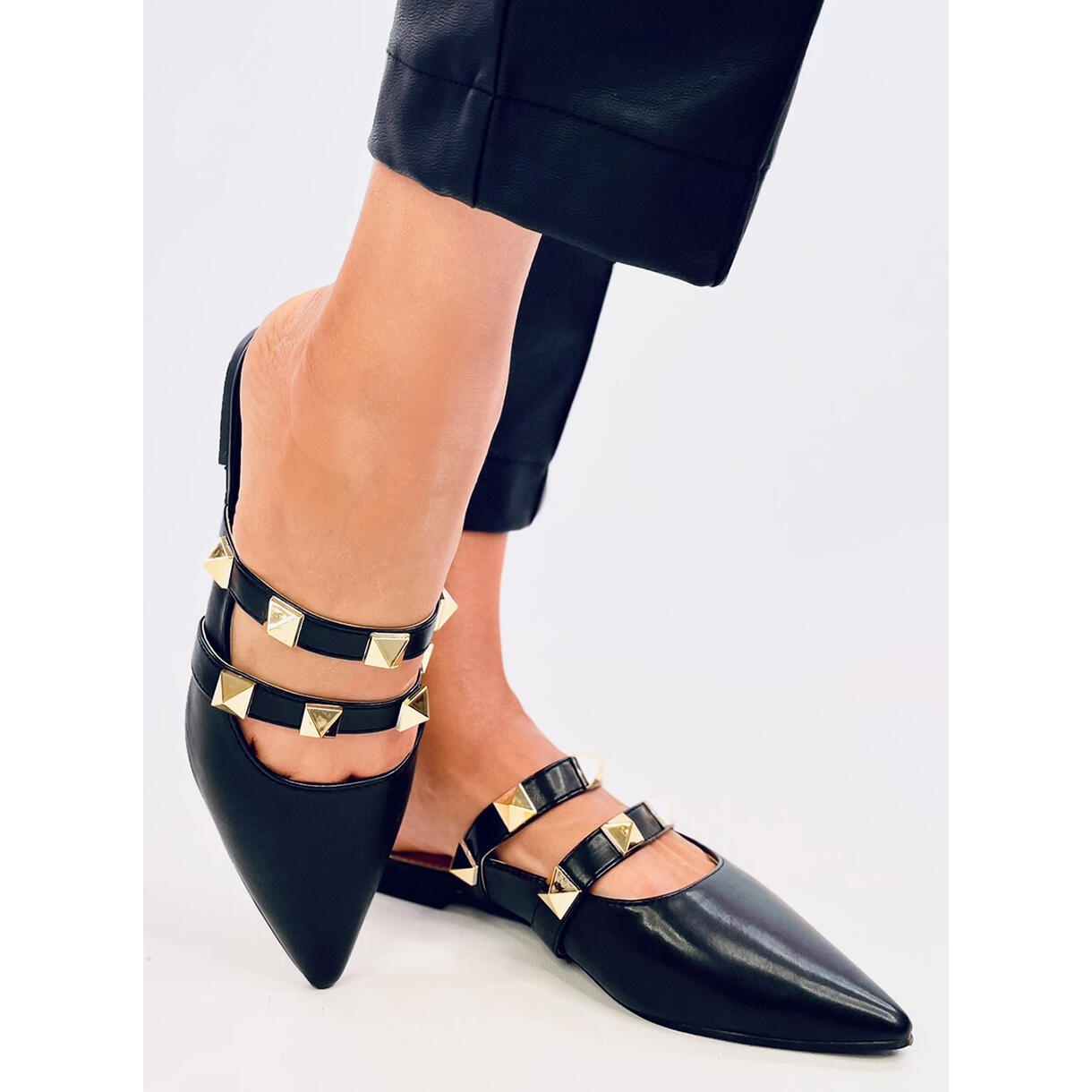 Black, grain flip flops that combine a classic form with a decisive, fashionable accent. A neat cut with narrowing toes subtly slim the foot, and the stripes blown with studs give the shoes character and modern style. Perfect every day - for urban stylizations, for a walk or to work on warmer days.