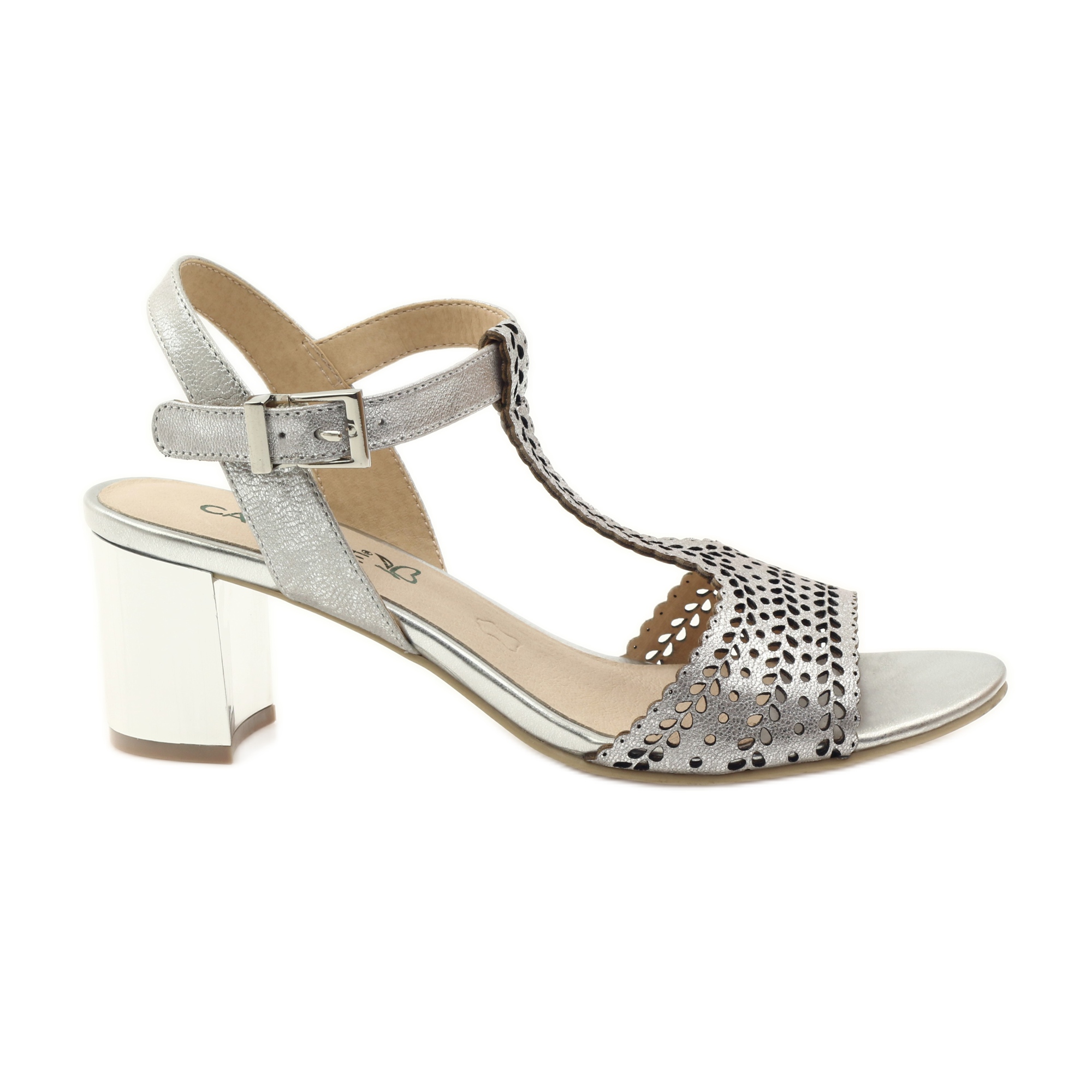 Caprice 28301 openwork sandals in a fashionable silver-gray shade are a proposition for women who value elegance and comfort. Made of natural leather, these classic sandals combine high quality with exceptional style. Their 6.5-centimeter metallic heel adds charm and emphasizes the figure, while ensuring stability when walking.